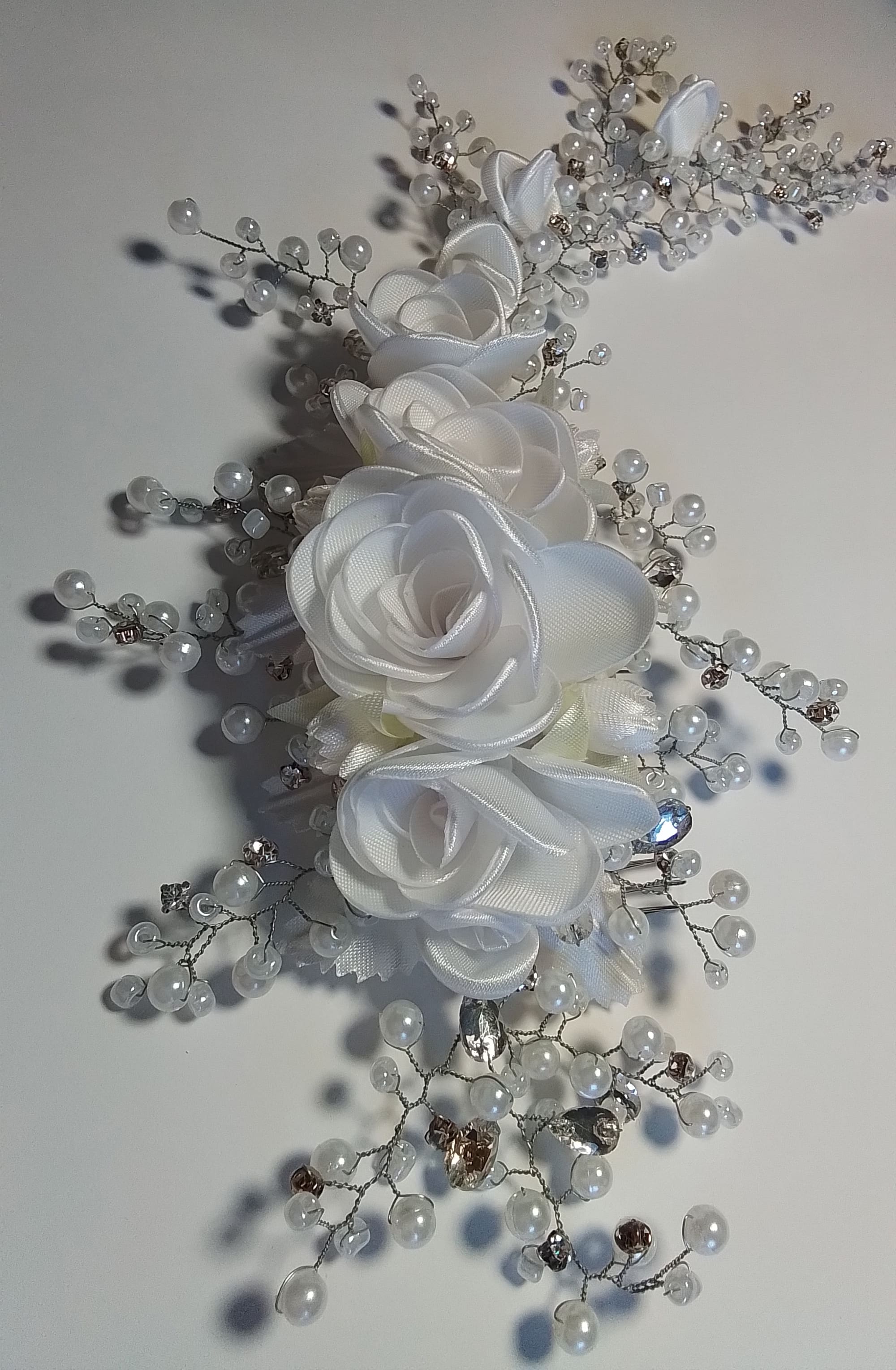 Grzebień z kryształami. Grzebyk do włosów z dżetów i perłyn.
