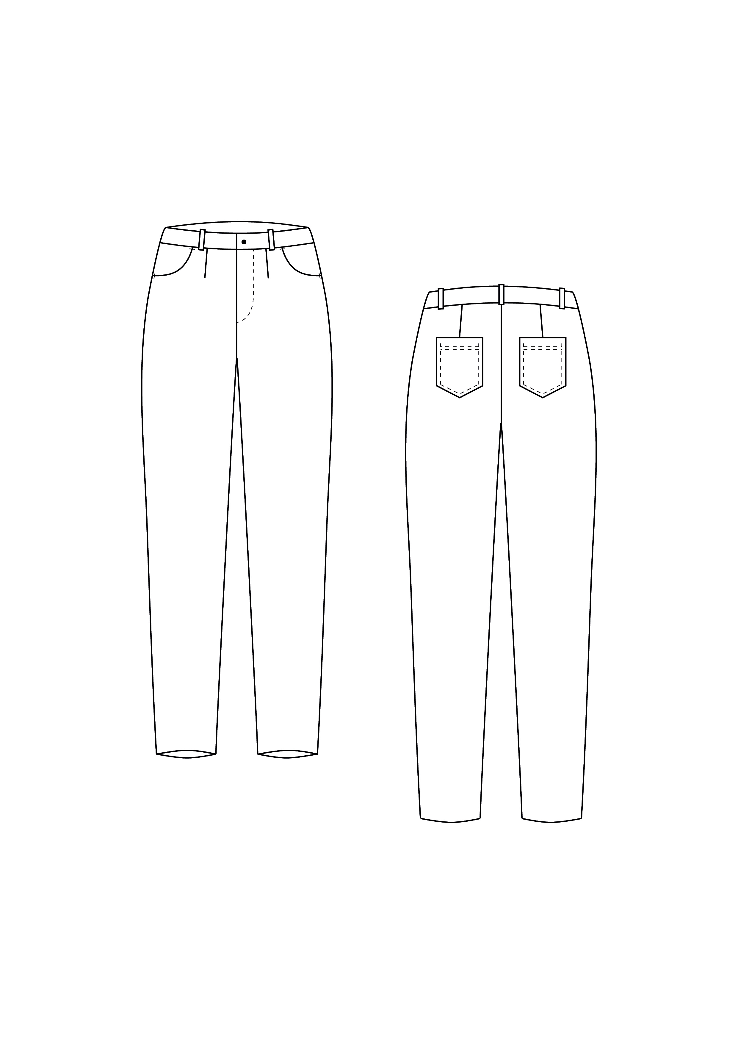 • spodni o kroju prostym, z dwoma zaszewkami; • w nogawkach wykonane są kieszenie boczne (szerokość 8 cm, wysokość 10 cm); • szwy boczne, wewnętrzne i siedzeniowe 1 cm; • z przodu wykonany rozporek zapinany na zamek błyskawiczny; • pasek łączony się guzikiem przy szwie siedzeniowym
